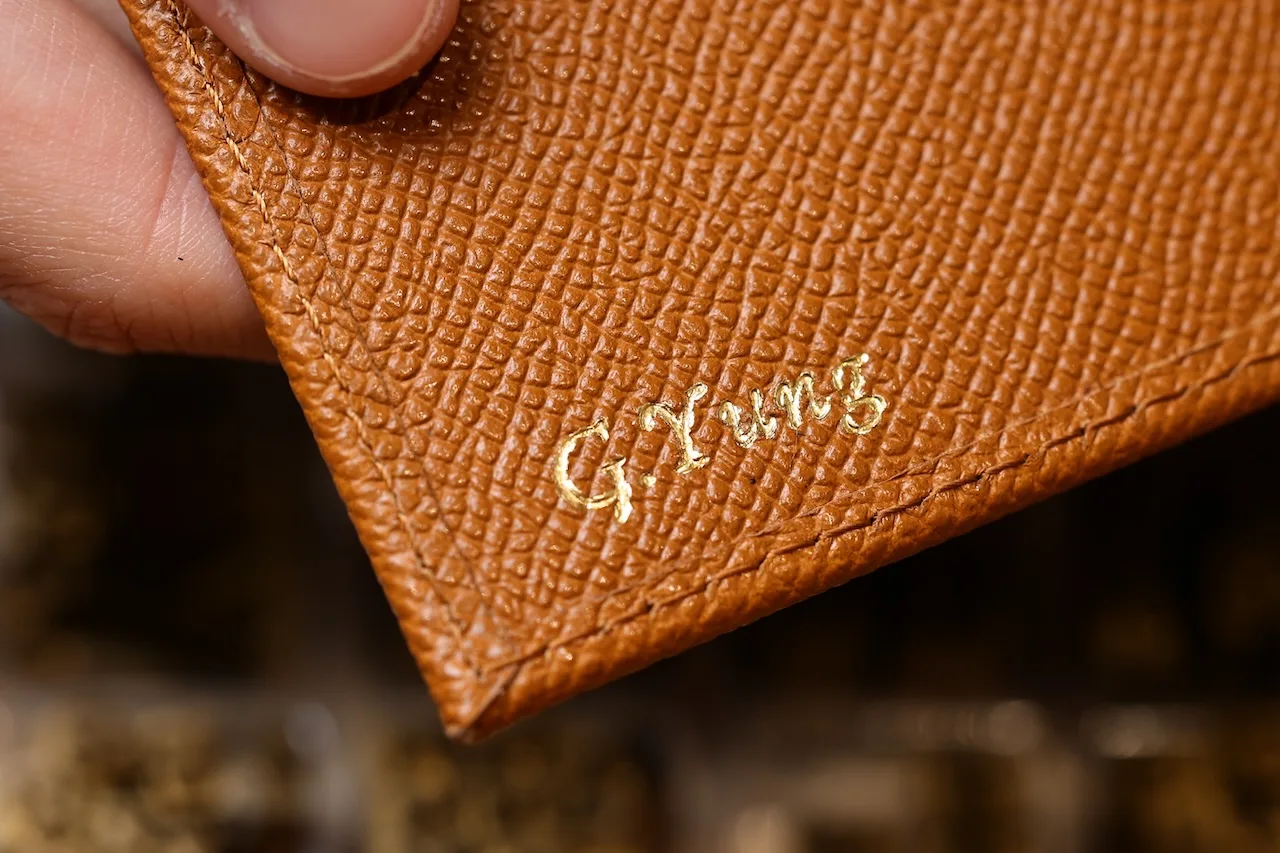 我們還提供英文數字熱壓及熱壓燙金服務。在皮具壓上紀念你們的文字,令皮具更獨一無二,成為你的生活一部分。