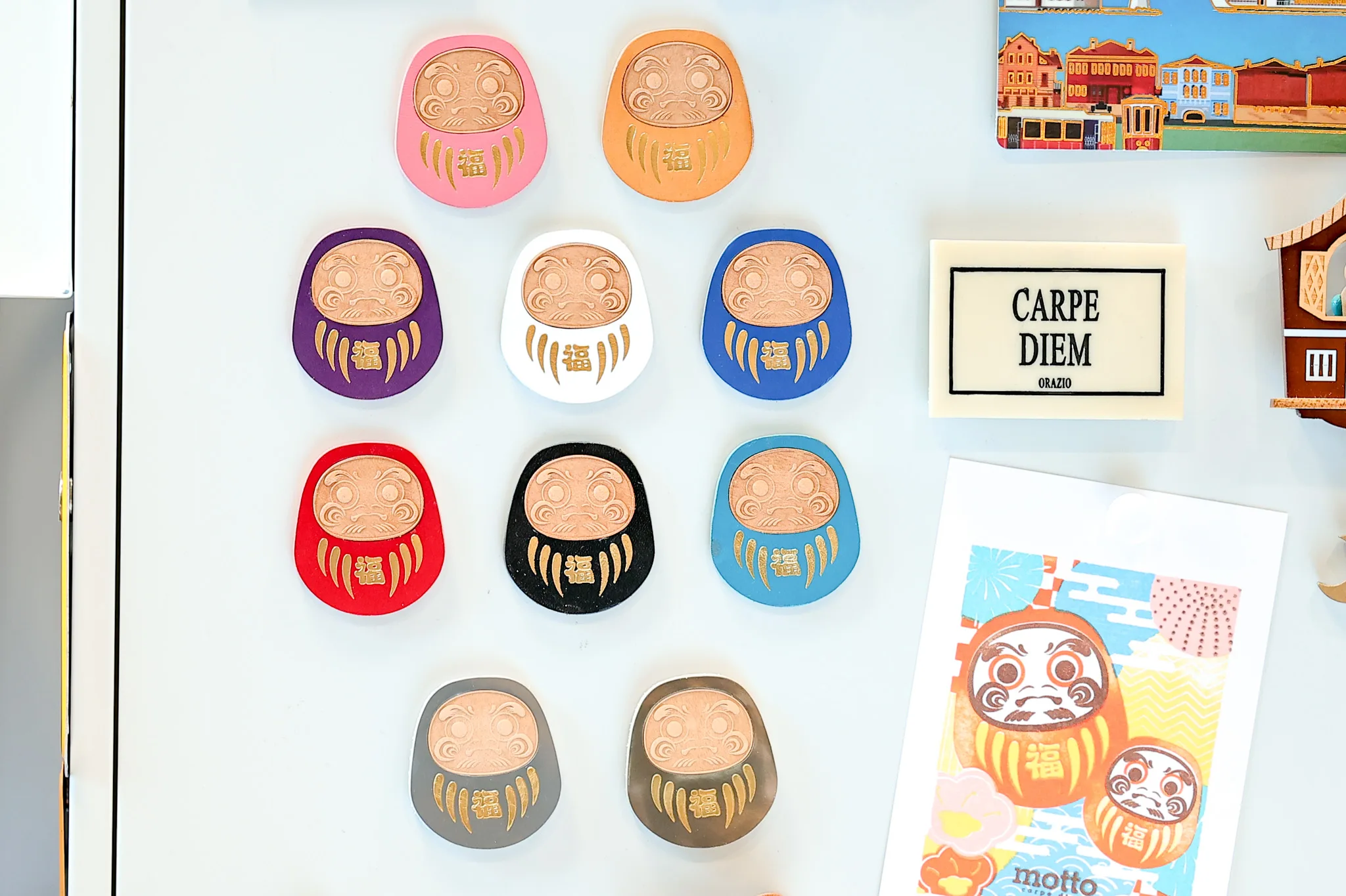 motto Daruma convenient magnetic stickers, the design concept comes from Japan’s wishing mascot – Daruma. It can be used on magnetic surfaces such as refrigerators and whiteboards to conveniently attach various notes, memos, photos, etc., functioning as sticky notes. It can also be used for display and decoration, adding a bit of novelty and beauty to living spaces such as homes and offices.