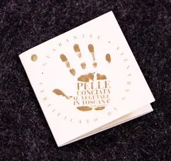 來自意大利植鞣皮革手掌協會之廠商,附有”Pelle Conciata al Vegetale in Toscana”字樣之証書。