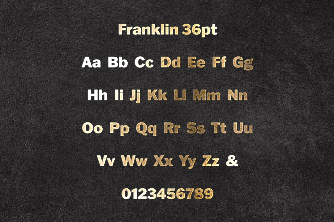 我們提供6款字型,各有氣質,可因應個人風格去選擇。網上訂購則可選Bookman、Italian 或 Mayfair 三款字型。