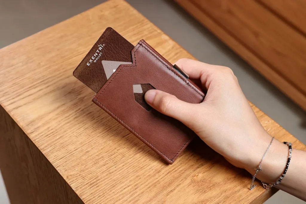 Exentri錢包兩側的窗戶可讓您即時獲取卡片。彈指之間即可獲取卡片。
