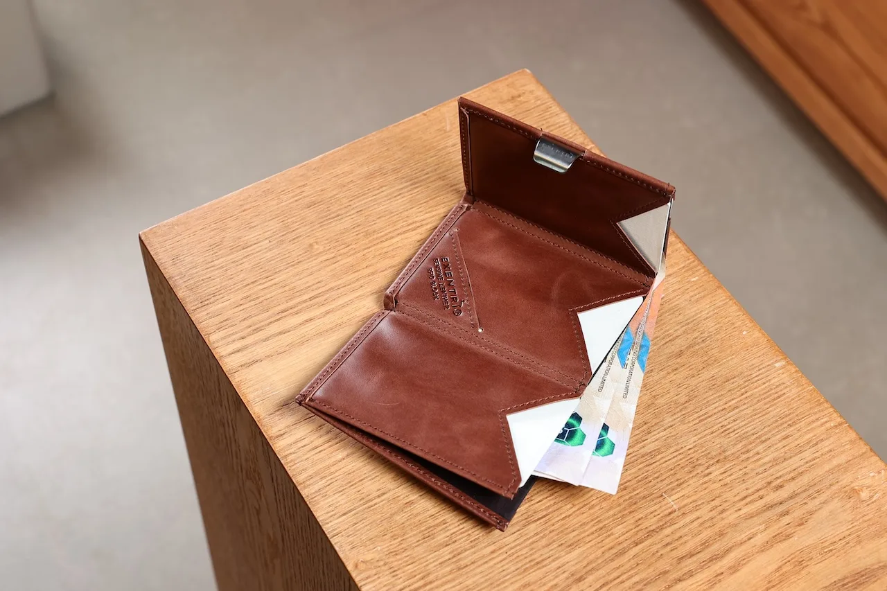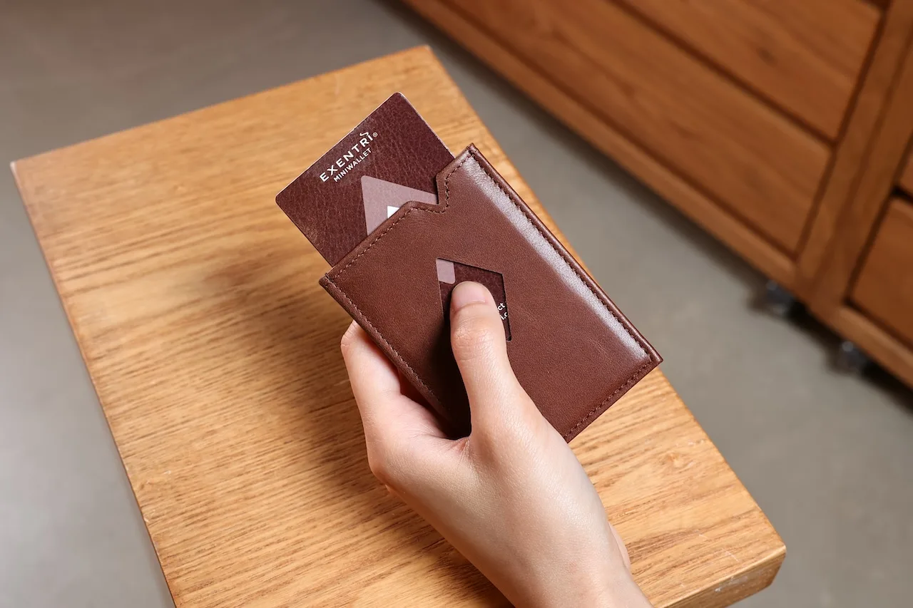 Exentri錢包兩側的窗戶可讓您即時獲取卡片。彈指之間即可獲取卡片。