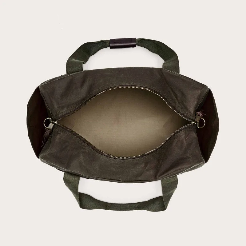 Filson Tin Cloth Duffle Bag 鍍蠟布袋是為輕便快速旅行而設計的包包,具備傳奇防天氣性能和耐用性。這款鍍蠟帆布旅行袋是一款輕量級而提供重型的性能的包包。