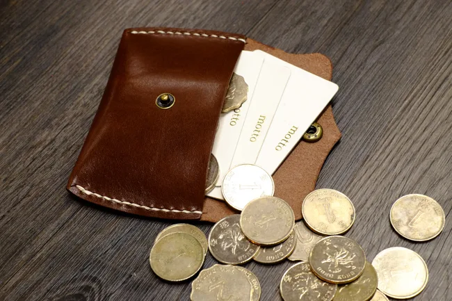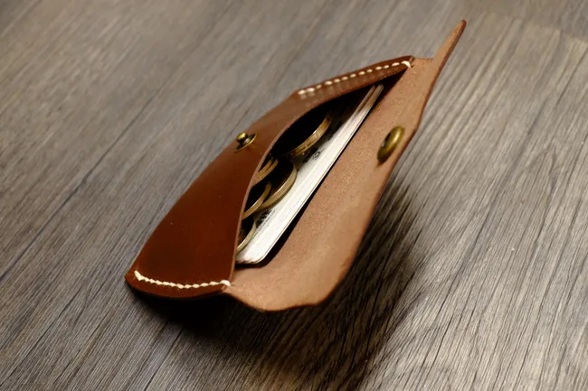 對摺的闊底部增加整體容量,能收納卡片或零錢和摺疊的紙幣。