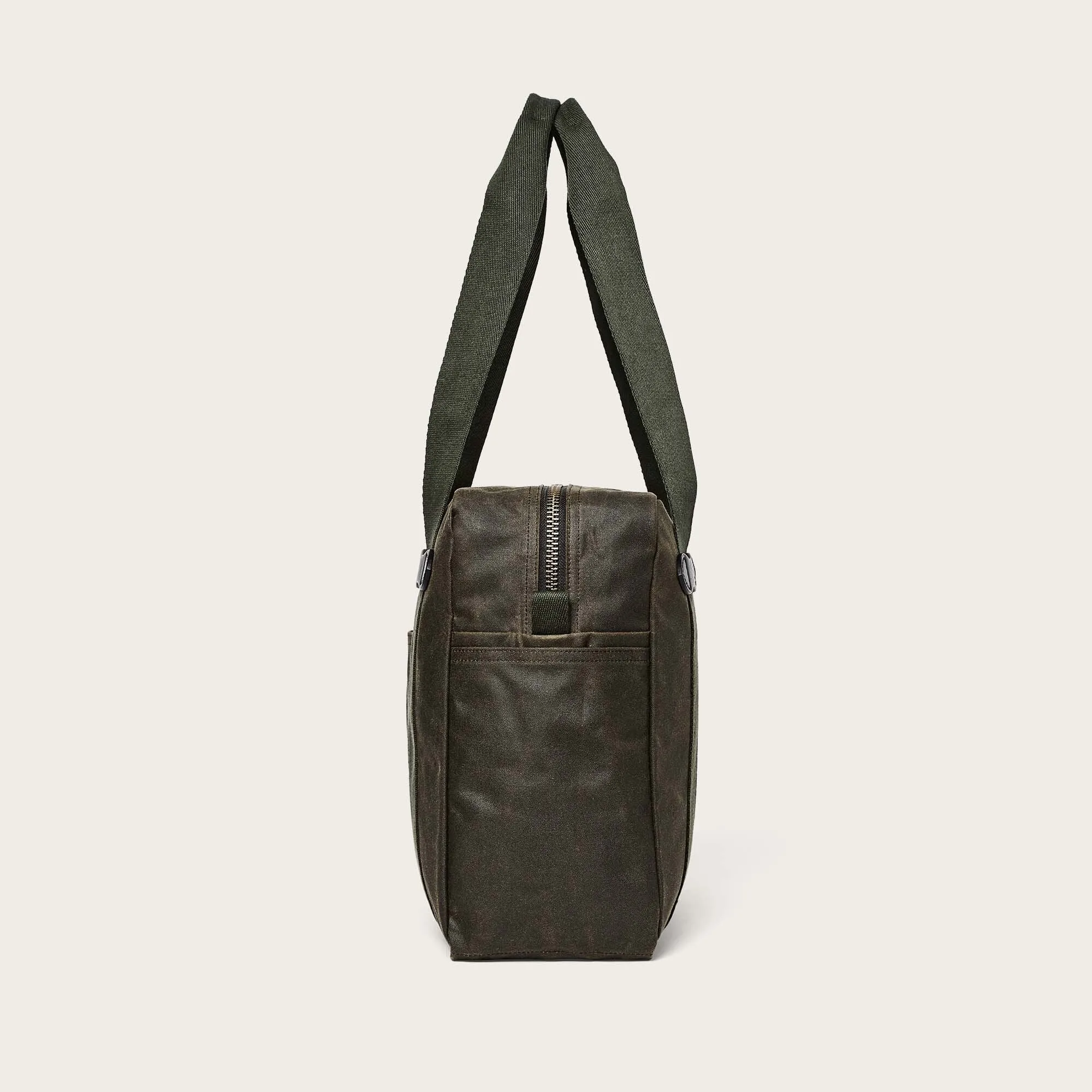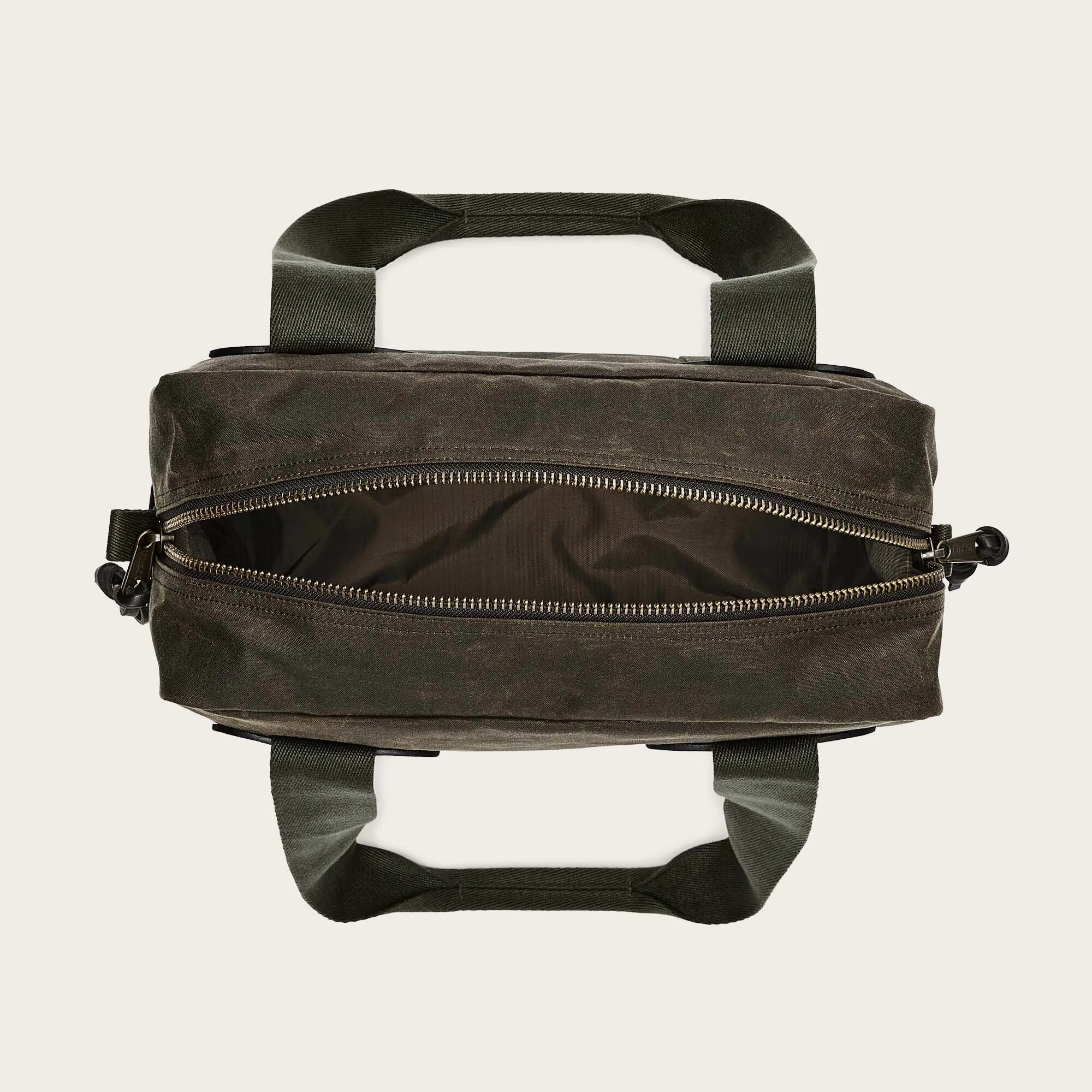 Filson Tin Cloth 包專為輕便快速旅行而設計,具備我們包款享有盛譽的防天氣性能和耐用性。內部完全襯裡強韌的尼龍,以提供額外的保護。結實的棉網帶手柄足夠長,可輕鬆搭在肩上,便於無手攜帶使用。